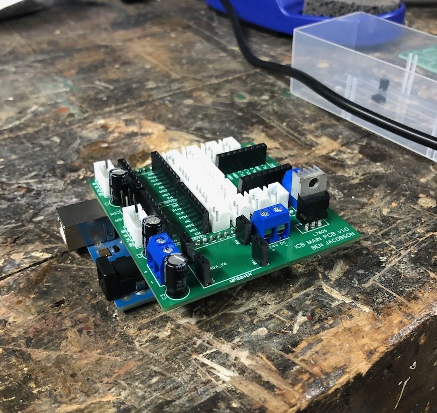 I ordered the PCBs from Hong Kong, and believe it or not, all three worked on the first try. All I had to do was solder the pin headers and components, mount the boards to the machine, and flick on the power.