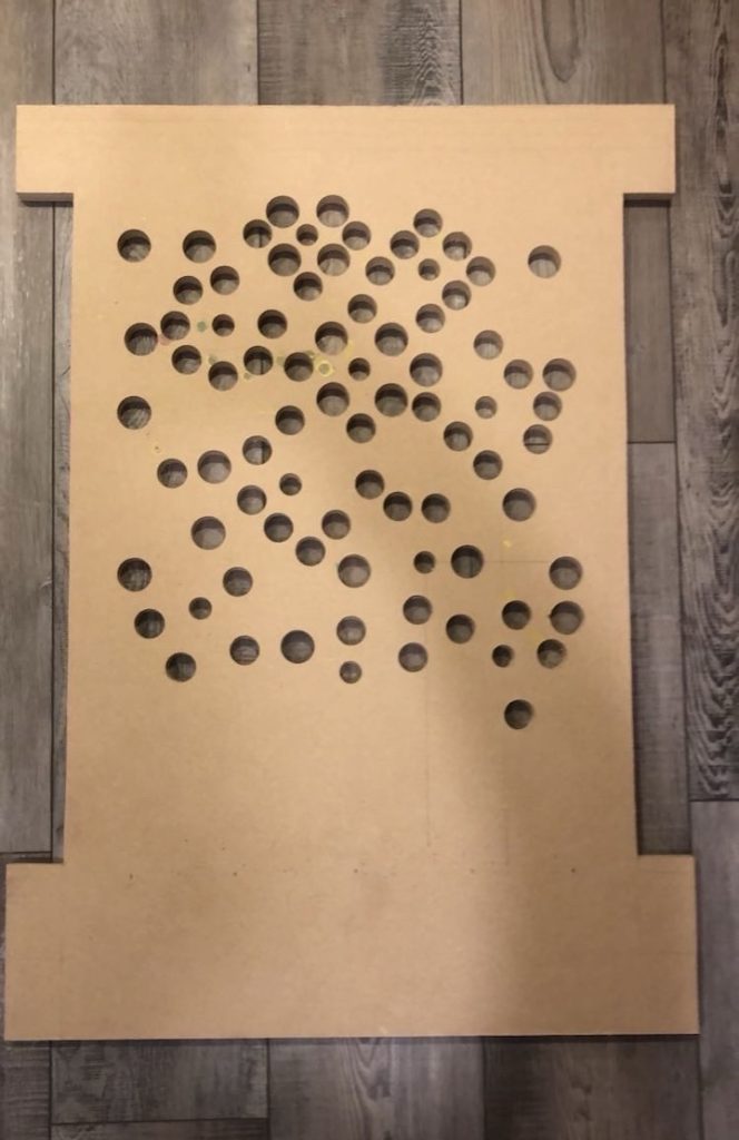 To map out the hole pattern of the original game accurately, I found a reference image online, brought it into Fusion 360, scaled it accordingly, and traced circles over the holes in a 2D sketch. I created a list of X and Y coordinates of each hole relative to the bottom left corner of the playfield and its diameter. Each hole is one of only three different sizes, with the target holes being the smallest.