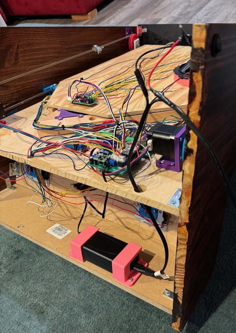 I started with the heart of the machine, the playfield, as a proof of concept. Once I knew the basic mechanics were working, I set out to build a cabinet to hold everything together. The original game uses a full standing cabinet, but I opted for a tabletop version instead.