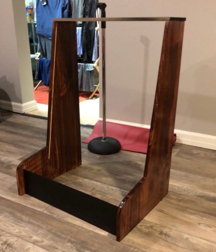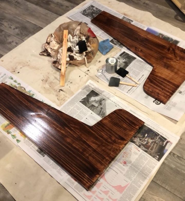 Next, I painted the MDF pieces black and stained the pine pieces with a Mahogany color before coating them in polyurethane for a glossy finish.